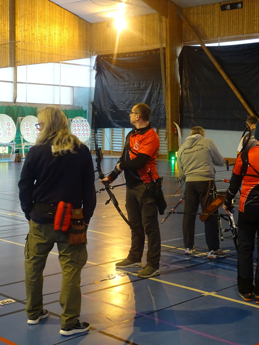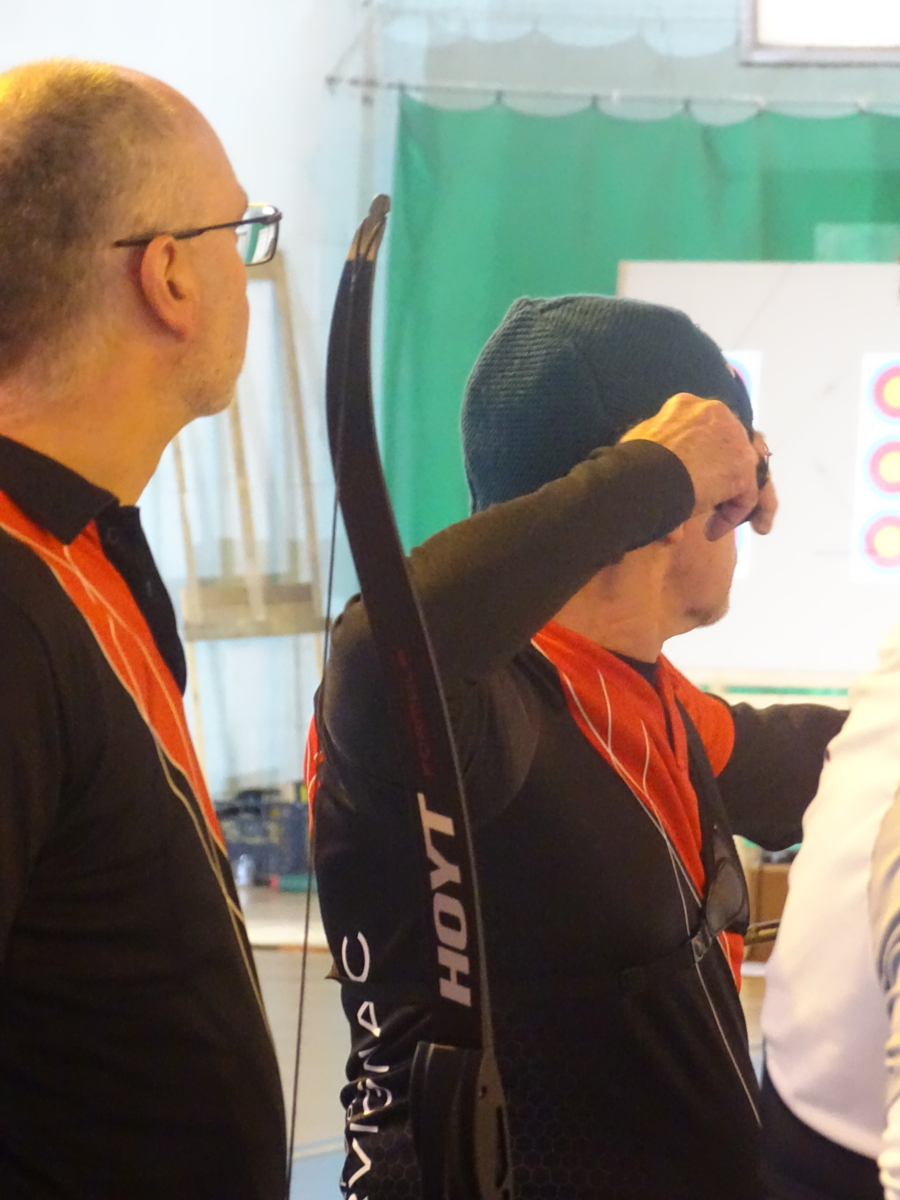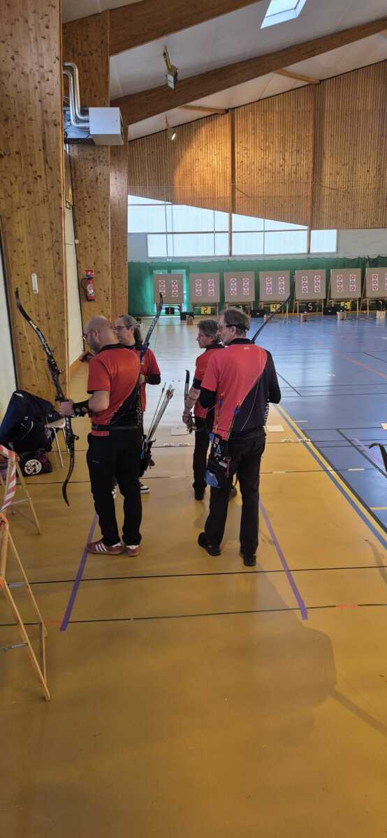 C’était notamment le cas de l’équipe homme classique (2), composée de Fabrice D. (capitaine), Gwenaël, Sébastien L.B. et Sébastien J. Positivité et engagement sur chaque flèche les ont portés bien au-delà de leurs attentes initiales, avec à la clé une très belle 7ᵉ place sur 14 équipes engagées, avec deux victoires en duel, dont une obtenue en barrage.