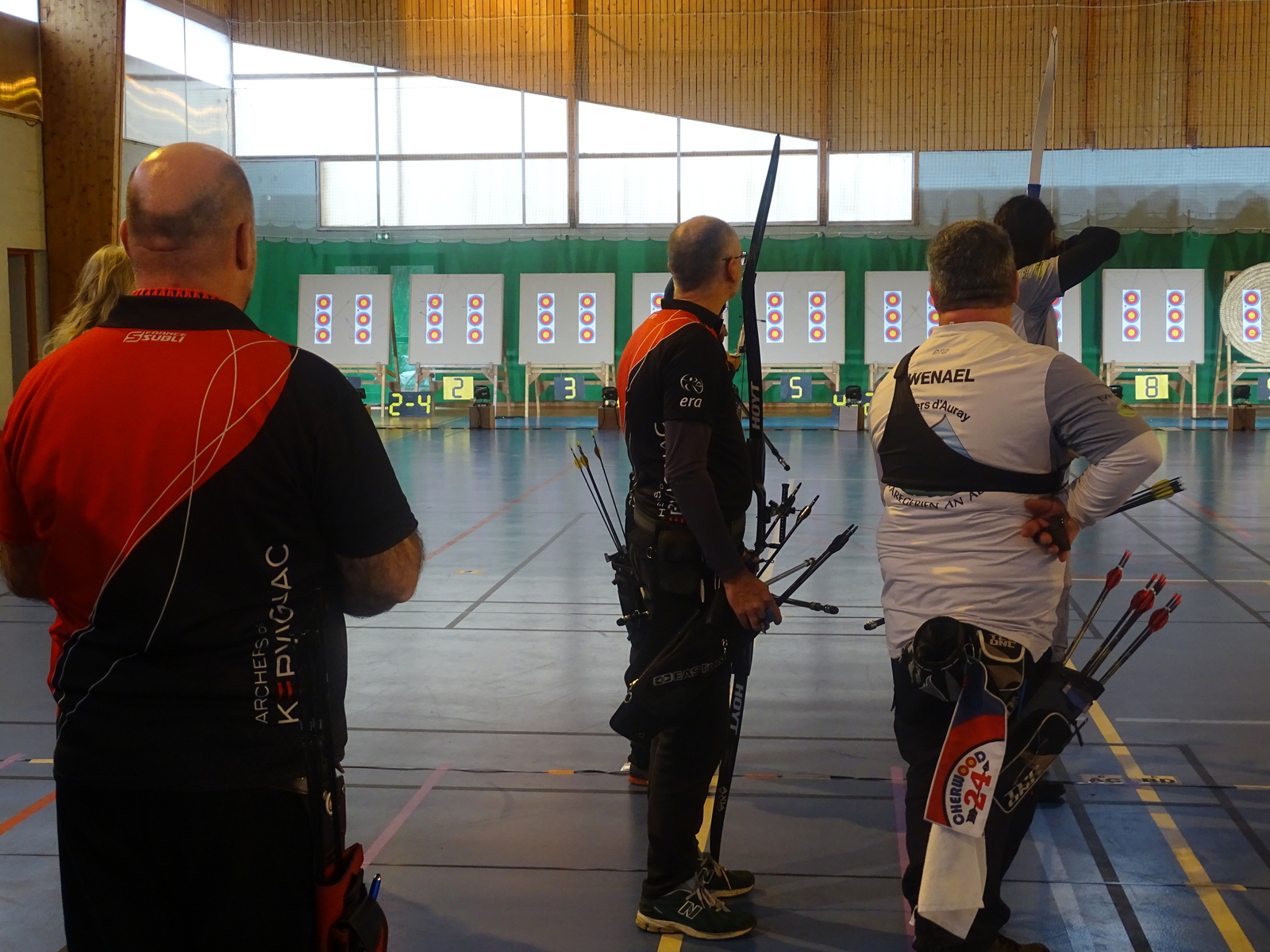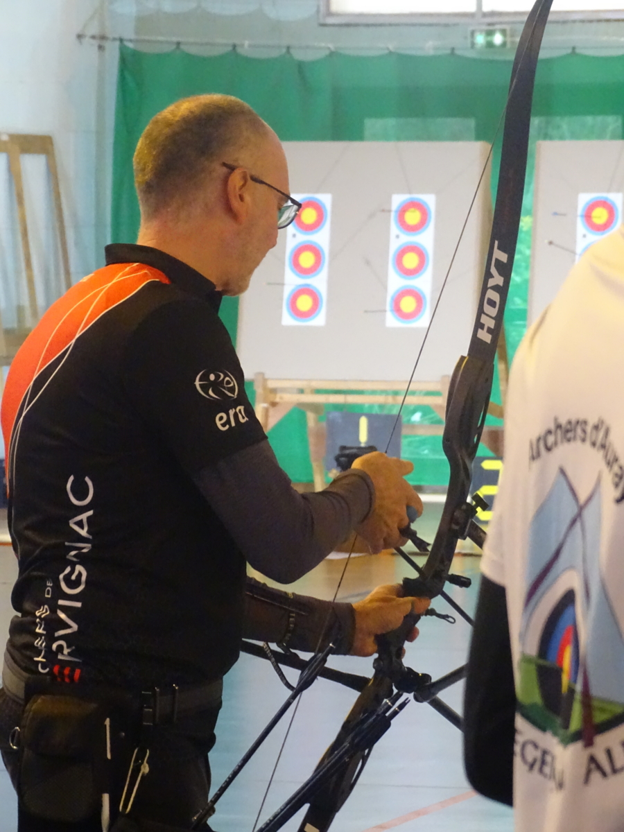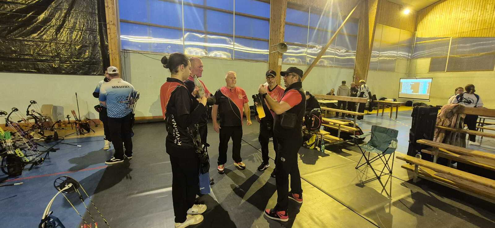 C’était notamment le cas de l’équipe homme classique (2), composée de Fabrice D. (capitaine), Gwenaël, Sébastien L.B. et Sébastien J. Positivité et engagement sur chaque flèche les ont portés bien au-delà de leurs attentes initiales, avec à la clé une très belle 7ᵉ place sur 14 équipes engagées, avec deux victoires en duel, dont une obtenue en barrage.