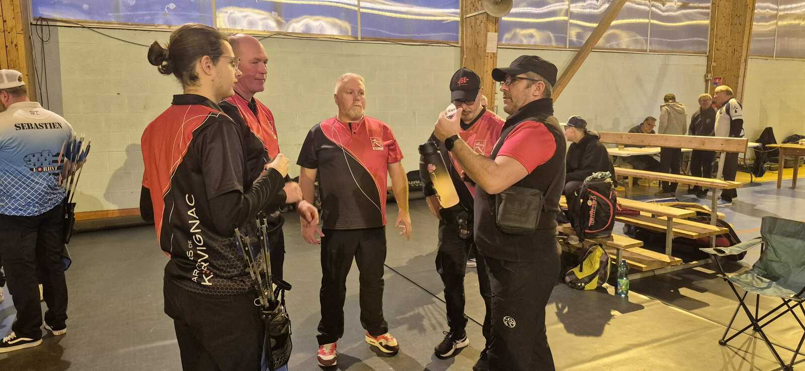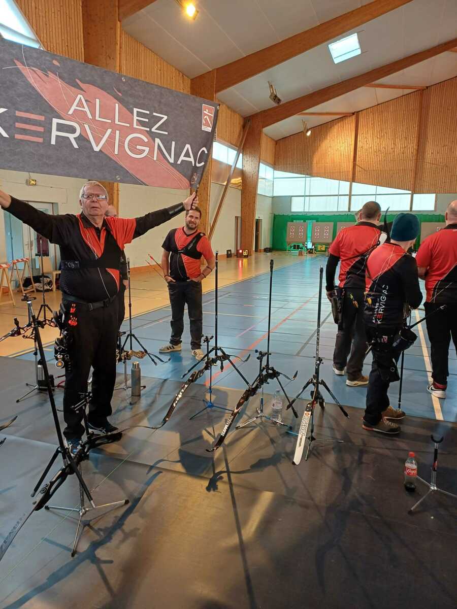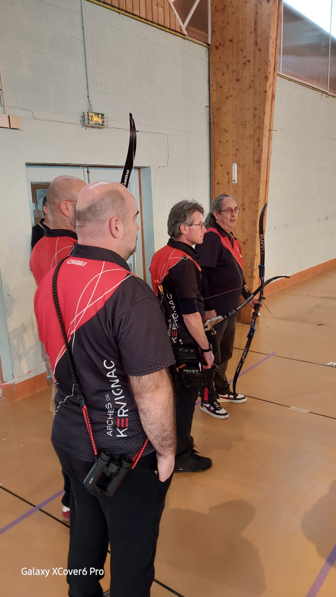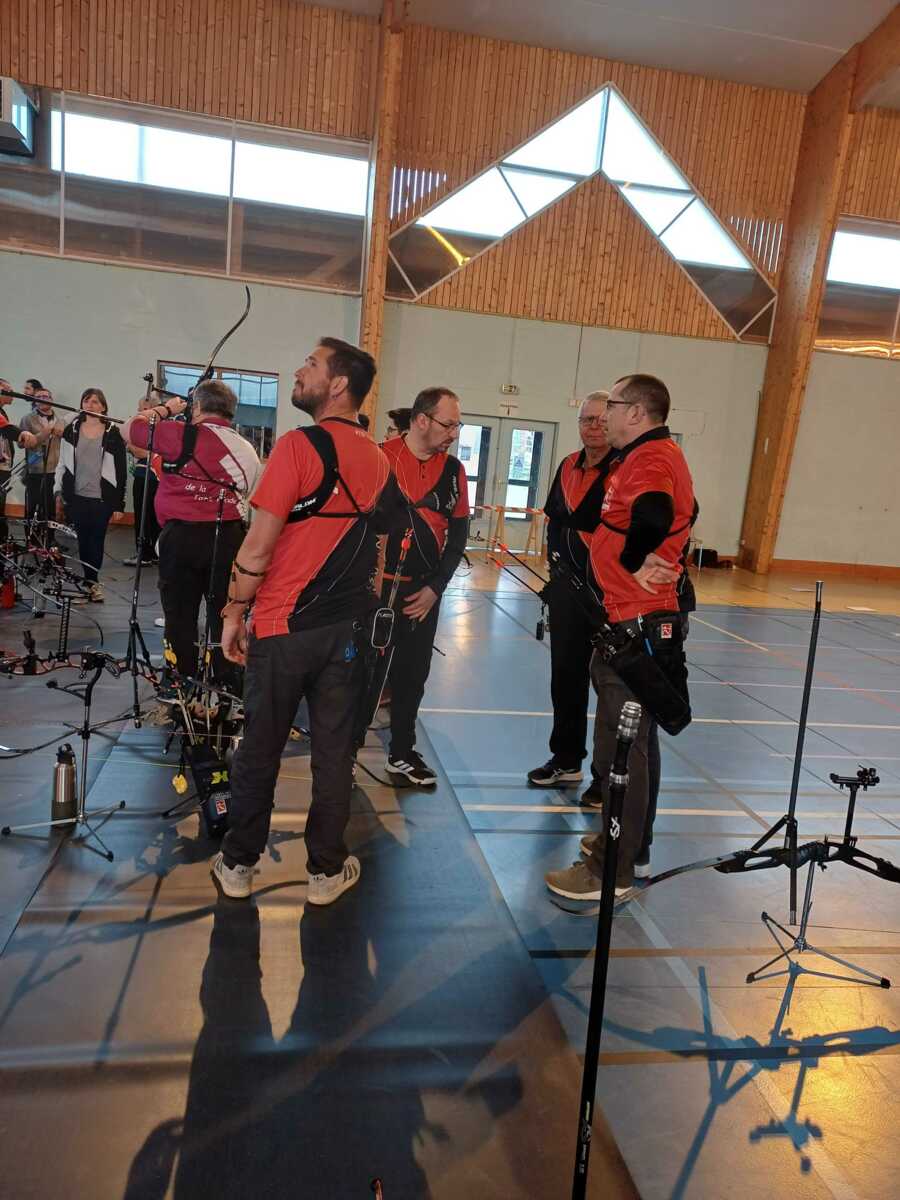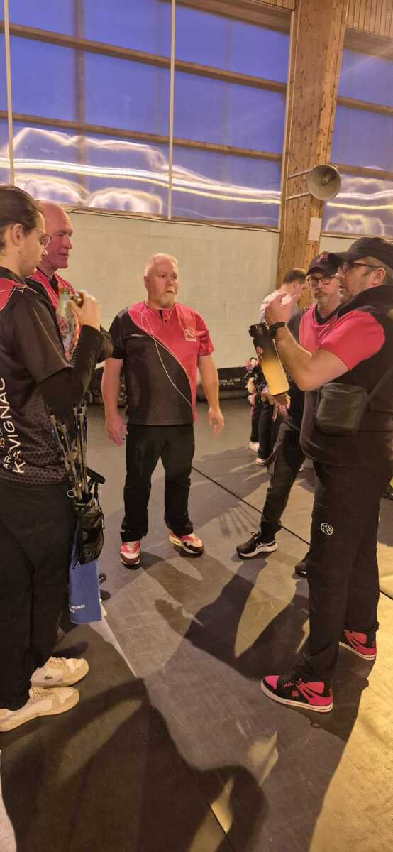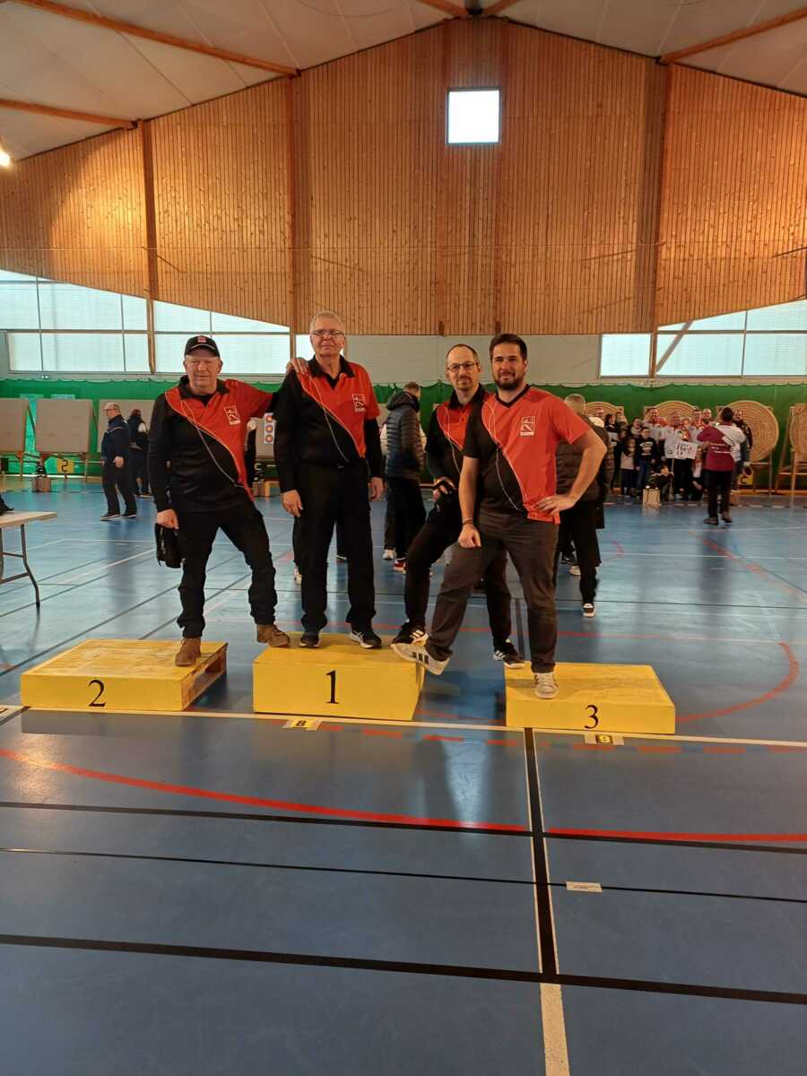 C’était notamment le cas de l’équipe homme classique (2), composée de Fabrice D. (capitaine), Gwenaël, Sébastien L.B. et Sébastien J. Positivité et engagement sur chaque flèche les ont portés bien au-delà de leurs attentes initiales, avec à la clé une très belle 7ᵉ place sur 14 équipes engagées, avec deux victoires en duel, dont une obtenue en barrage.