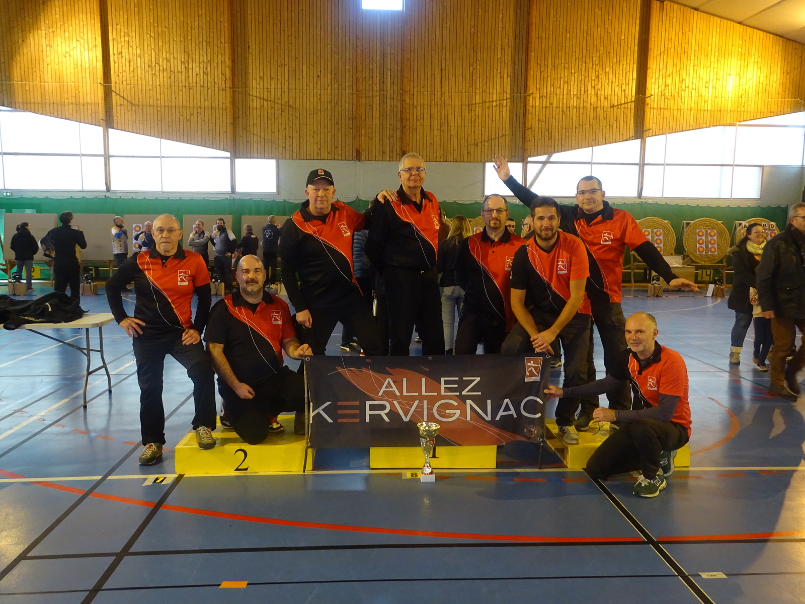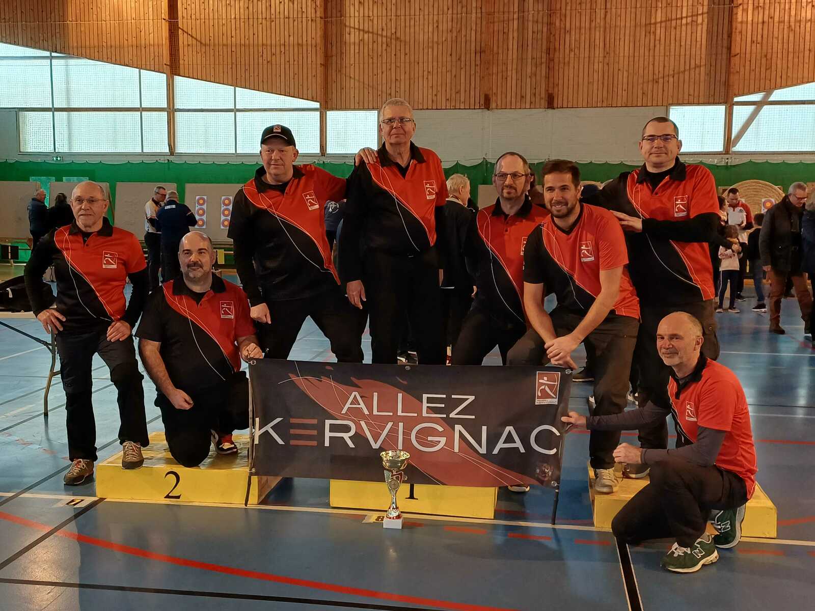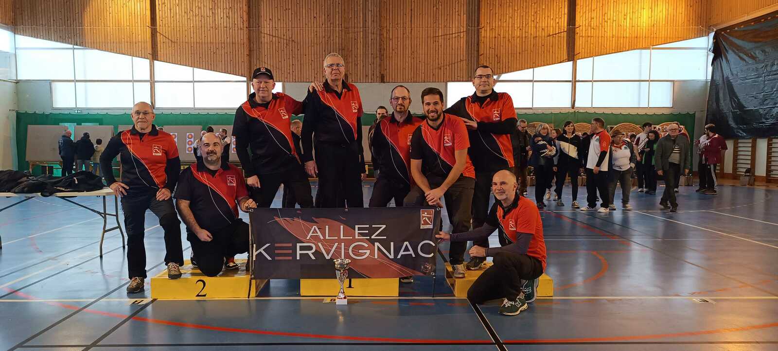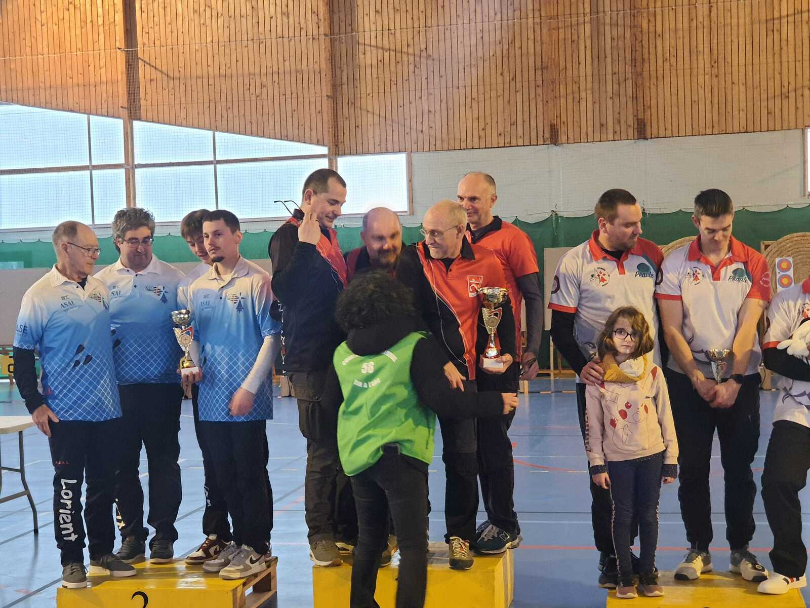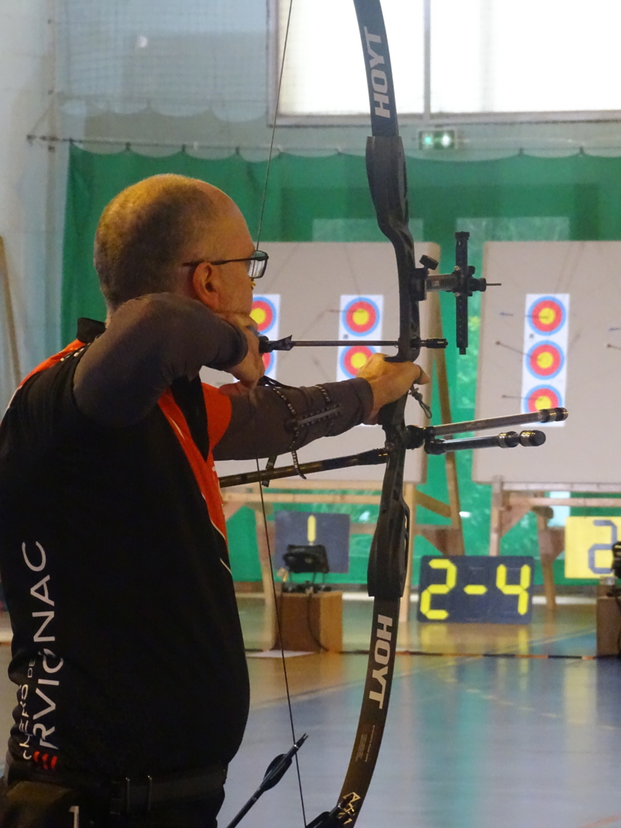 C’était notamment le cas de l’équipe homme classique (2), composée de Fabrice D. (capitaine), Gwenaël, Sébastien L.B. et Sébastien J. Positivité et engagement sur chaque flèche les ont portés bien au-delà de leurs attentes initiales, avec à la clé une très belle 7ᵉ place sur 14 équipes engagées, avec deux victoires en duel, dont une obtenue en barrage.